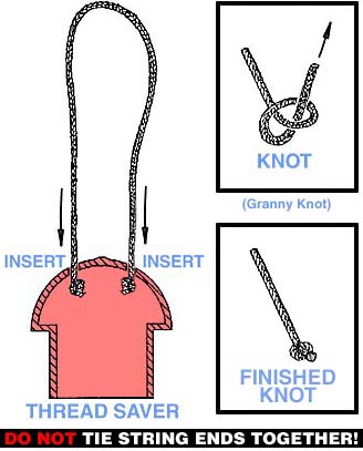 WARNING: The Thread Saver® and the nylon string is manufactured from a petroleum product and, therefore, may burn when exposed to direct flame. The Thread Saver® will start to lose its form when exposed to temperatures of 500 degrees or higher for an extended time.